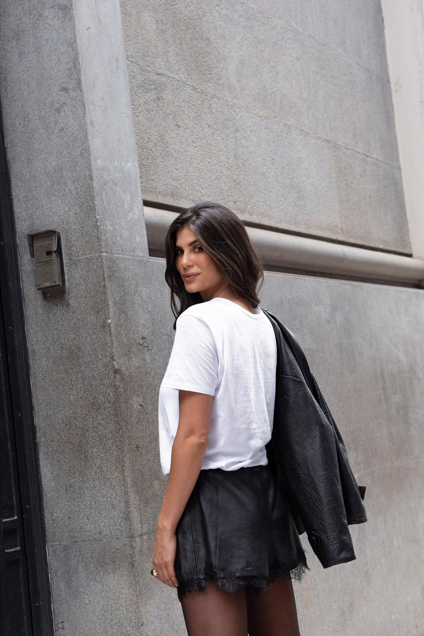O produto é confeccionado em couro 100% natural premium com detalhes em renda.